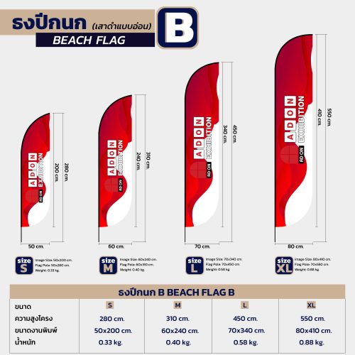 ธงชายหาด Beach Flag ทรงหยดนํ้า เหมาะสำหรับ การทำสื่อโฆษณา การประชาสัมพันธ์ ที่ต้องการการมองเห็นจากระยะไกล สามารถใช้ได้ทั้งภายใน และ ภายนอกอาคาร โครงสร้างประกอบด้วย ฐาน โครงเสาอลูมิเนียม ปลายเสาแบบไฟเบอร์ที่มีความยืดหยุ่นสูง ทนทาน ใช้งานได้ยาวนาน และ มีขนาดให้เลือกใช้งานที่หลากหลาย พร้อมให้คำปรึกษาด้วยทีมงานคุณภาพจาก AD ON