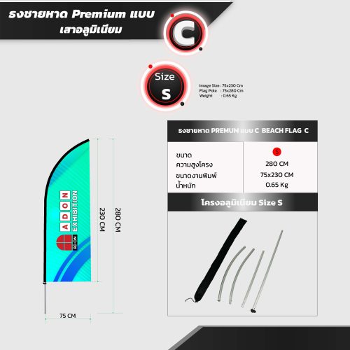 ธง 2 หน้า | ธงปีกนกพรีเมี่ยม C (เสาอลูมิเนียม)