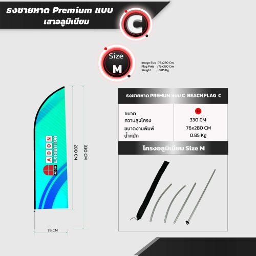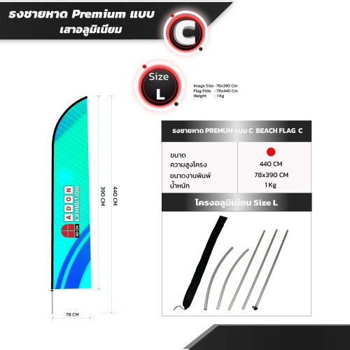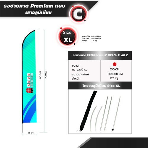 ธงปีกนกพรีเมี่ยมแบบ C (เสาอลูมิเนียม) เหมาะสำหรับ การทำสื่อโฆษณา การประชาสัมพันธ์ ที่ต้องการการมองเห็นจากระยะไกล สามารถใช้ได้ทั้งภายในและภายนอกอาคาร โครงสร้างประกอบด้วย ฐาน โครงเสาอลูมิเนียม ปลายเสาแบบไฟเบอร์ที่มีความยืดหยุ่นสูง ทนทาน ใช้งานได้ยาวนาน และมีขนาดให้เลือกใช้งานที่หลากหลาย พร้อมให้คำปรึกษาด้วยทีมงานคุณภาพจาก AD ON