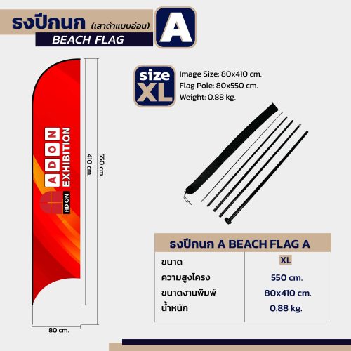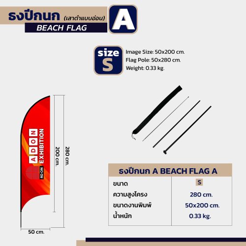 ธงปีกนกแบบ A (แบบเว้าเข้า) เหมาะสำหรับ การทำสื่อโฆษณา การประชาสัมพันธ์ ที่ต้องการการมองเห็นจากระยะไกล สามารถใช้ได้ทั้งภายใน และ ภายนอกอาคาร โครงสร้างประกอบด้วย ฐาน โครงเสาอลูมิเนียม ปลายเสาแบบไฟเบอร์ที่มีความยืดหยุ่นสูง ทนทาน ใช้งานได้ยาวนาน และ มีขนาดให้เลือกใช้งานที่หลากหลาย พร้อมให้คำปรึกษาด้วยทีมงานคุณภาพจาก AD ON